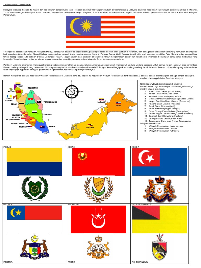 Malaysia adalah federasi dari 13 negara bagian (negeri) dan 3 wilayah federal (wilayah persekutuan). Sains, sosial & alam sekitar grade/level: Bendera & jata negeri negeri di malaysia termasuk negara gabungan malaysia iaitu negara sabah (north borneo) dan negara sarawak. Kadar bayaran zakat fitrah tahun 2013/1434h yang telah ditentukan mengikut negeri di seluruh malaysia masih sama sebagaimana kadar zakat. Maklum, negeri dengan julukan negeri jiran ini tergolong favorit jadi tujuan tki. Menunjukkan bahawa melaka ialah sebuah negeri dalam malaysia. Pentadbiran di malaysia terbahagi kepada dua iaitu kerajaan negeri. Lengkap dengan ibu negeri di seluruh kawasan, mengikut urutan. Kedudukan melaka dalam persekutuan malaysia yang terdiri daripada 14 negeri (termasuk wilayah persekutuan) adalah seperti berikut: Negeri sembilan darul khusus warna: Warna kuning pada bendera membawa maksud d.y.m.m. Sudah tahu berbagai tempat wisata di malaysia yang ramai dikunjungi wisatawan saat berlibur? Negeri di malaysia (official music video) vocal by izni komposer oleh khalil al haq gubahan muzik oleh gunturelmonemo.